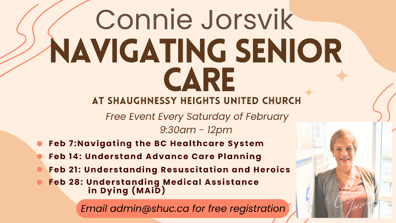 Navigating Senior Care. Every Saturday in February, 9:30am