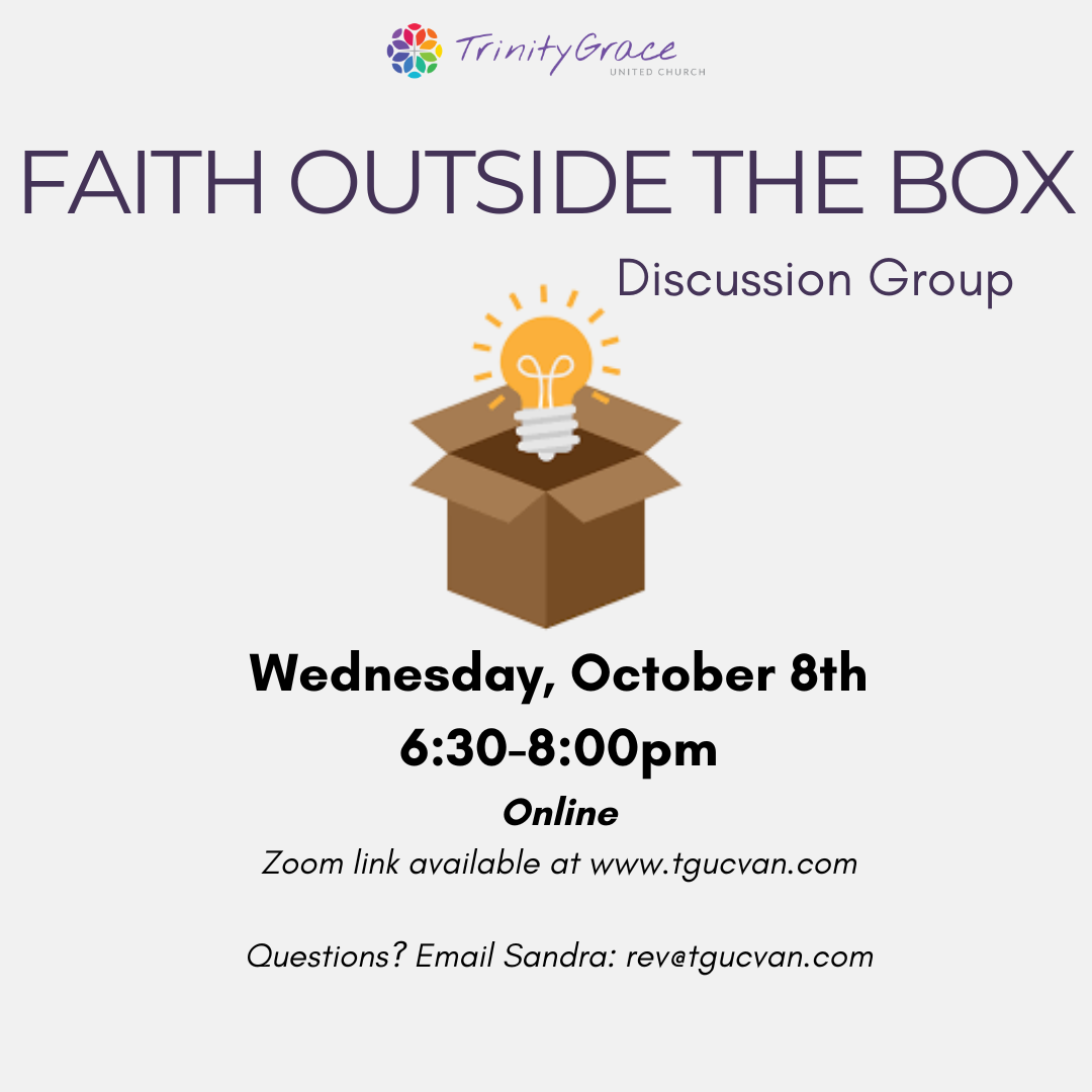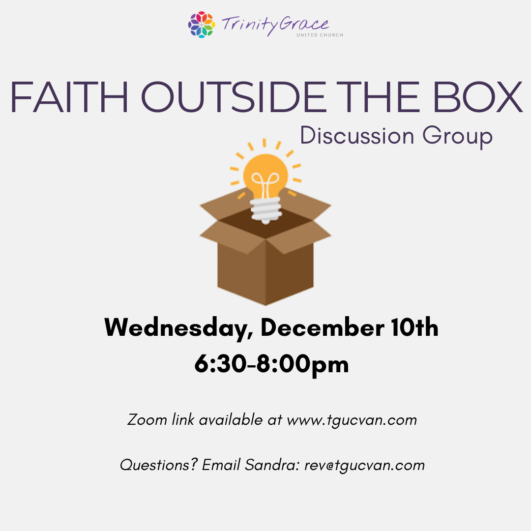 This discussion group welcomes anyone who’s interested in talking about “faith outside the box”. Bring your curiosity and your questions!